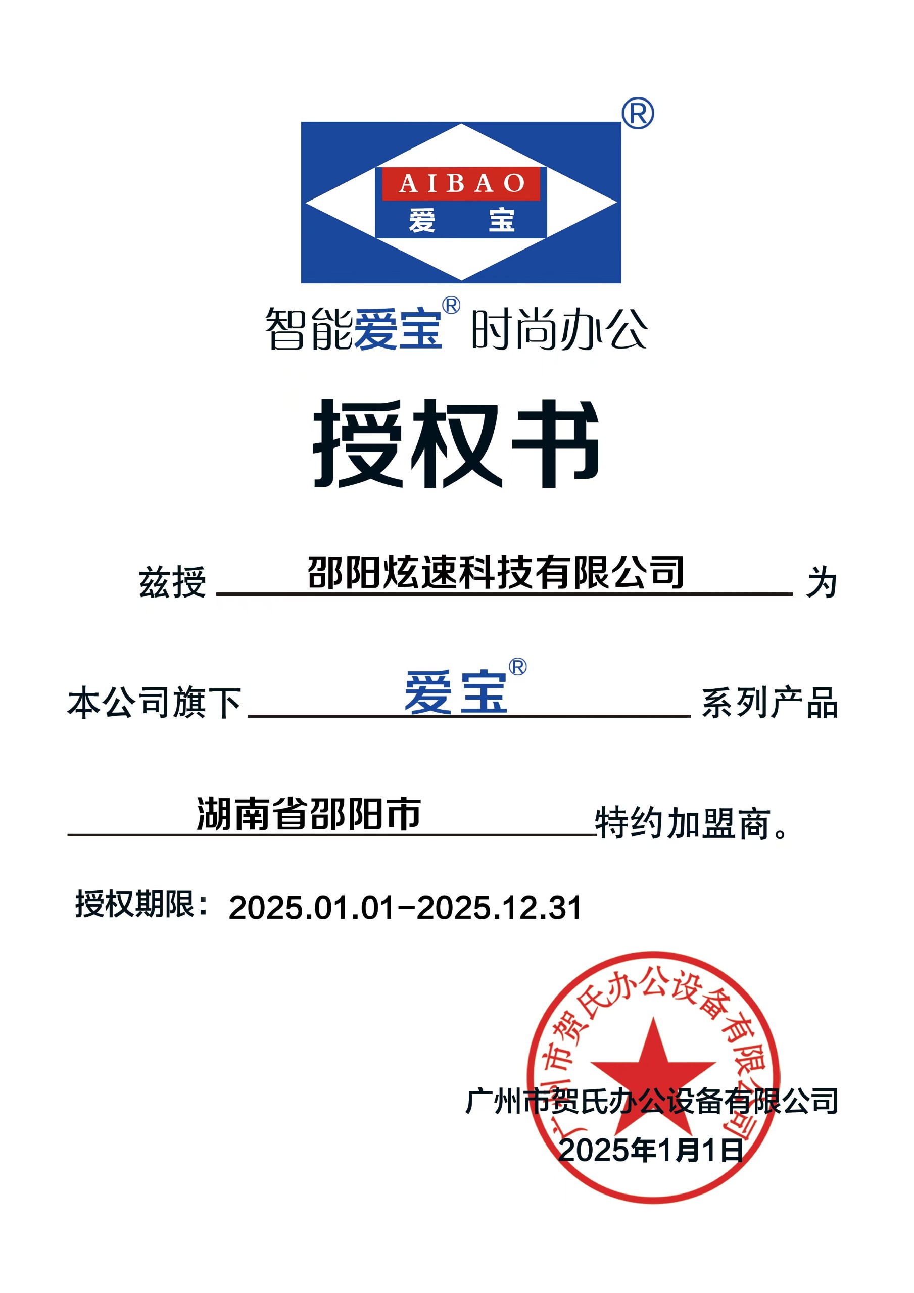 愛寶-授權(quán)證書